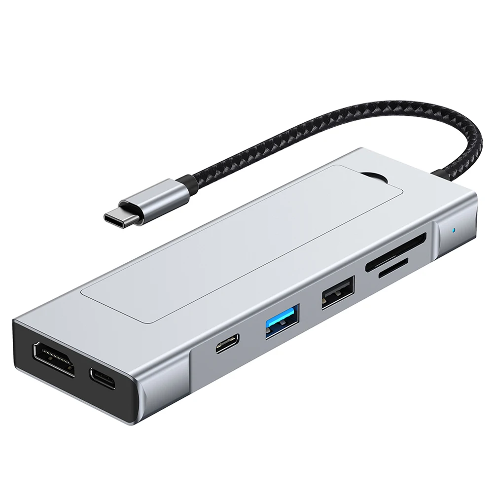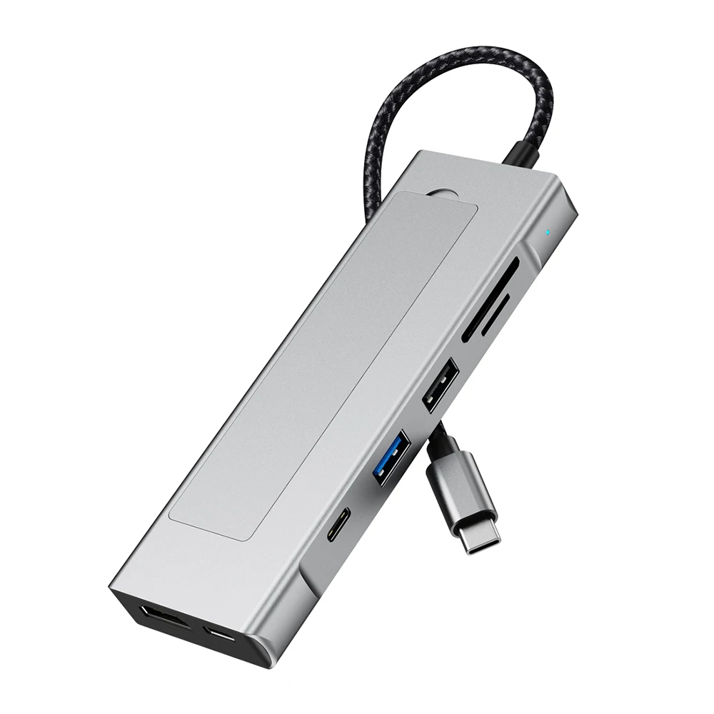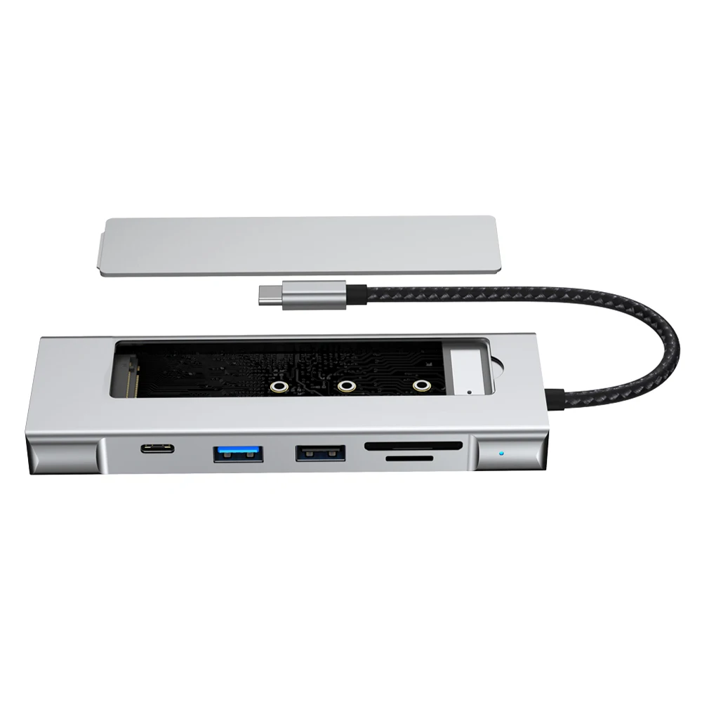 8-in-1 USB Hub M.2 NVMe SATA SSD Enclosure Storage USB3.2 Type-c to HDMI-Compatible Laptop Dock Station USB Adapter For Macbook